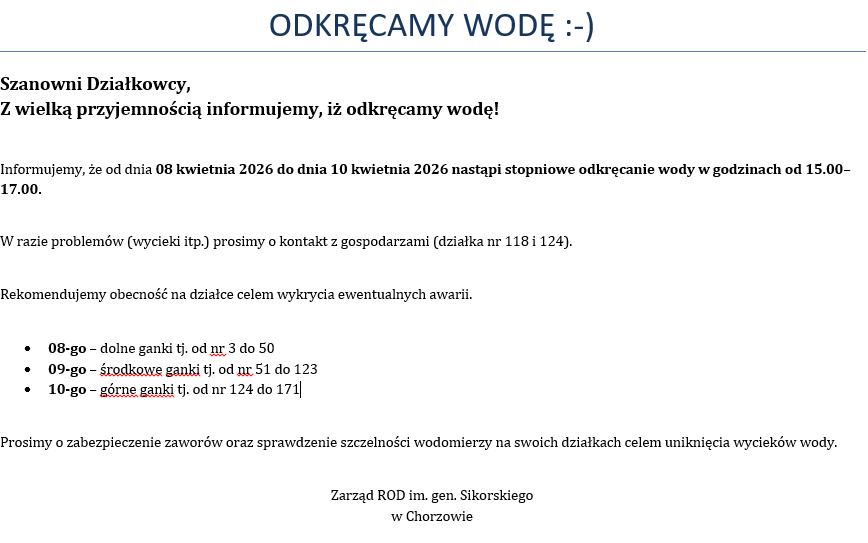 Witamy Państwa na stronie Rodzinnych Ogródków Działkowych im. gen. Sikorskiego w Chorzowie zlokalizowanych przy ul. Gruntowej.